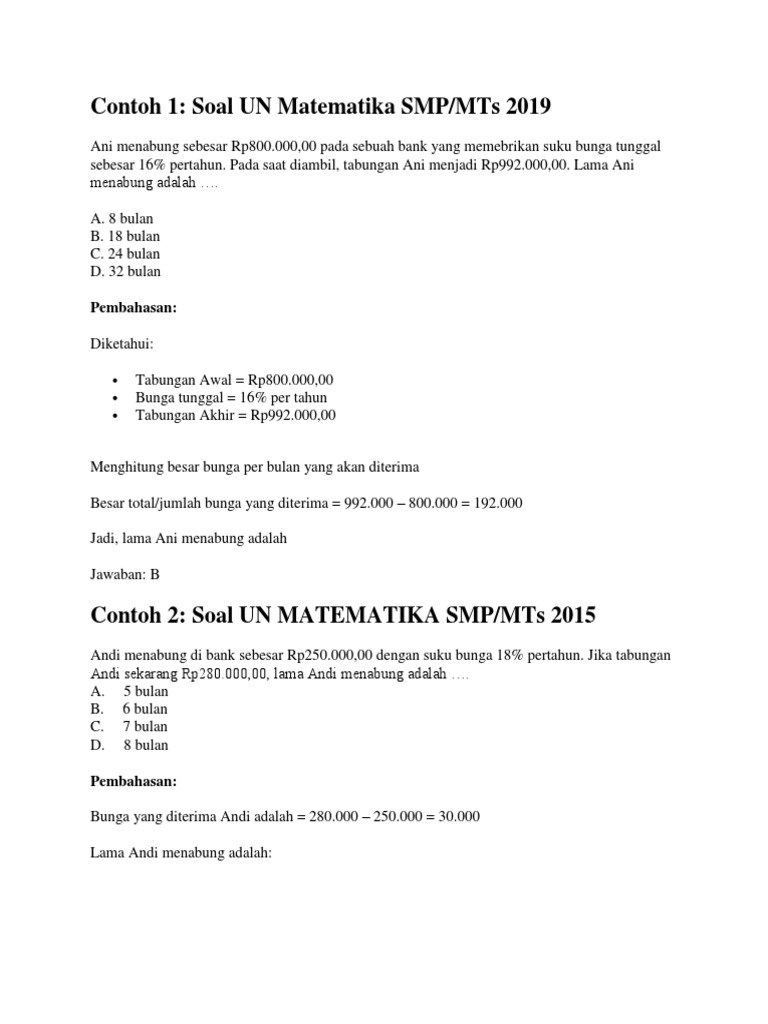 Soal Matematika Smp Aritmatika Sosial Language:id - Bruto Tara Dan Neto Contoh Soal Matematika Materi Smp : 2) un matematika smp / mts tahun 2008 sebuah bank memberikan bunga deposito 9% setahun.
